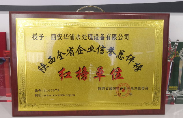 近日,西安華浦水處理設(shè)備有限公司被評為“陜西全省企業(yè)信用總評榜紅榜單位”。